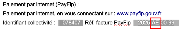 Suite à un changement de notre logiciel de facturation, une erreur s’est produite dans la génération de la référence de facture Payfip nécessaire pour le paiement par internet (PayFip)