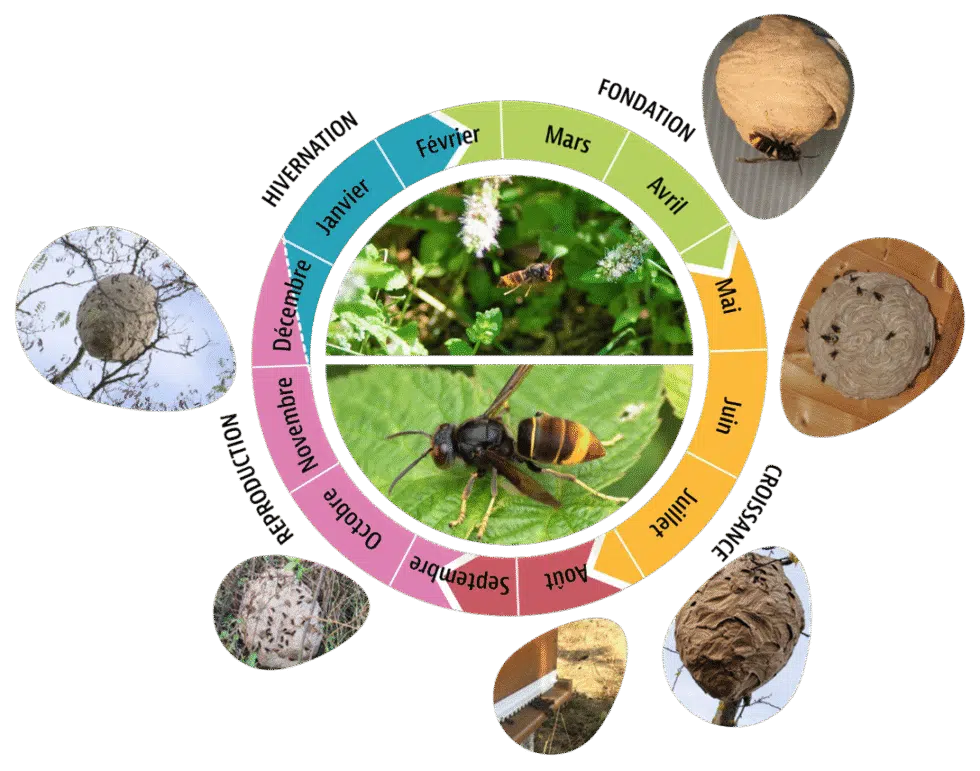 Nids abandonnées ! Phase de dormance des gynes qui hivernent endormies, dans des lieux protégés des conditions hivernales (cavités souterraines, tas de bois ou souche, grenier, ….).